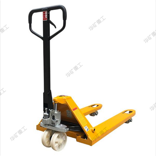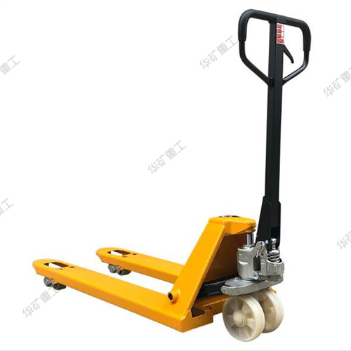 在使用時,將貨叉插入托盤孔內(nèi),由人力驅(qū)動液壓系統(tǒng)來實(shí)現(xiàn)托盤(貨物)的起升和下降,并由人力拉動完成搬運(yùn)作業(yè),是托盤運(yùn)輸工具中使用簡便、有效、常見的裝卸搬運(yùn)工具。