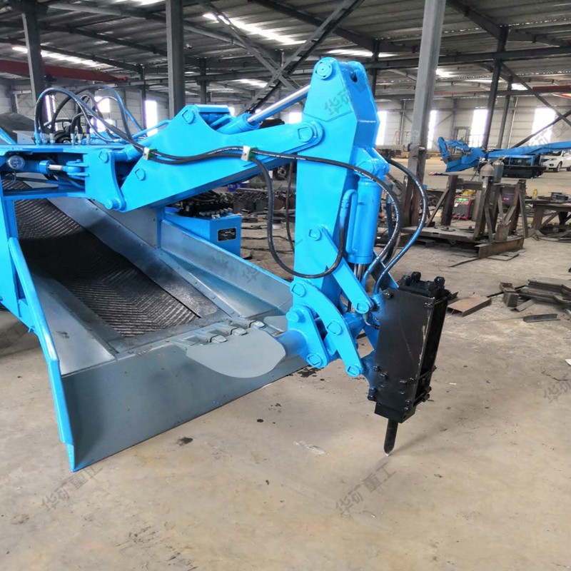 采用底盤分體設(shè)計,通過力強,可以靈活的通過巷道“小支脈”。輸送大架采用分體設(shè)計,對于豎井礦山下井安裝極為方便。皮帶采用pvg高拉力阻燃帶使用壽命長,可保證掘進巷道距離為360m以上。挖掘式裝載機扒渣機具由轉(zhuǎn)彎靈活,操作簡單,掘進巷道不用調(diào)頭,效率高等優(yōu)點。